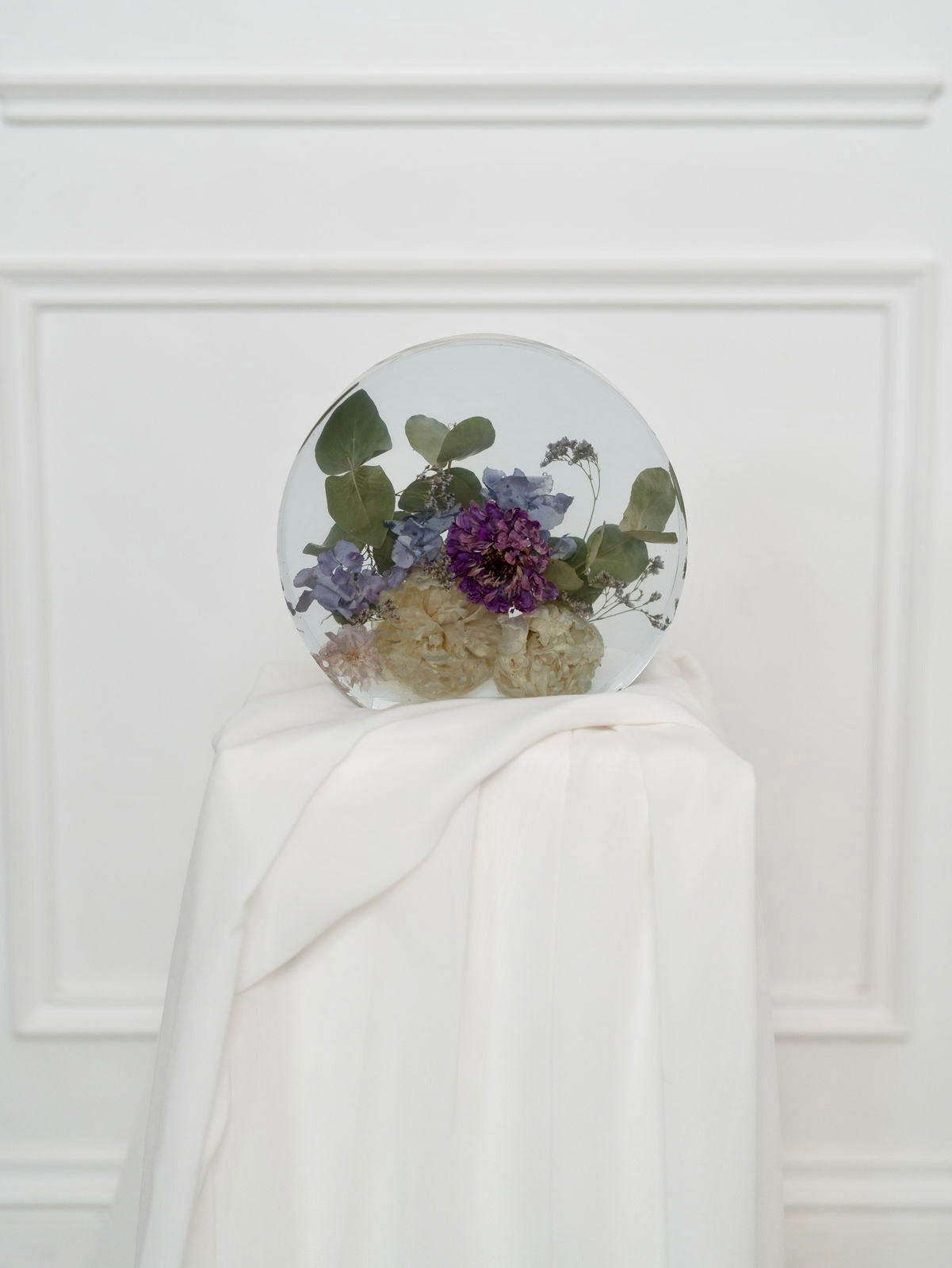 Wir verewigen deinen Brautstrauß in dem wunderschönen Modell Rund mit Stellkante.